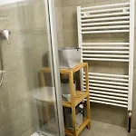 Une salle de bain comprend une douche à l'italienne. Un sèche-cheveux sont également disponibles.